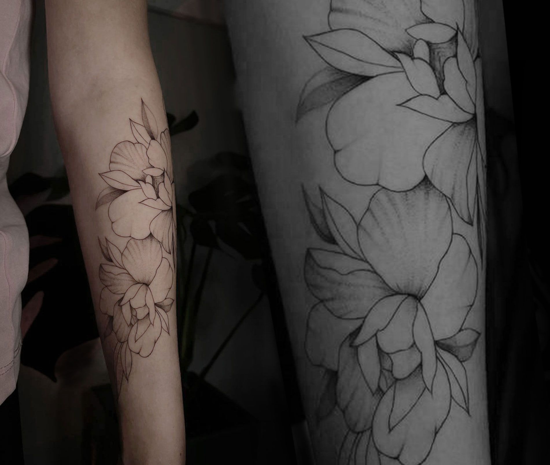 Каждая работа Тани — это не просто рисунок, а тщательно продуманная картина на коже. Она мастерски сочетает ровные контуры, плотный покрас и тонкую графику, создавая татуировки, которые выглядят безупречно. Аккуратность, внимание к деталям и стиль — её фирменный почерк.